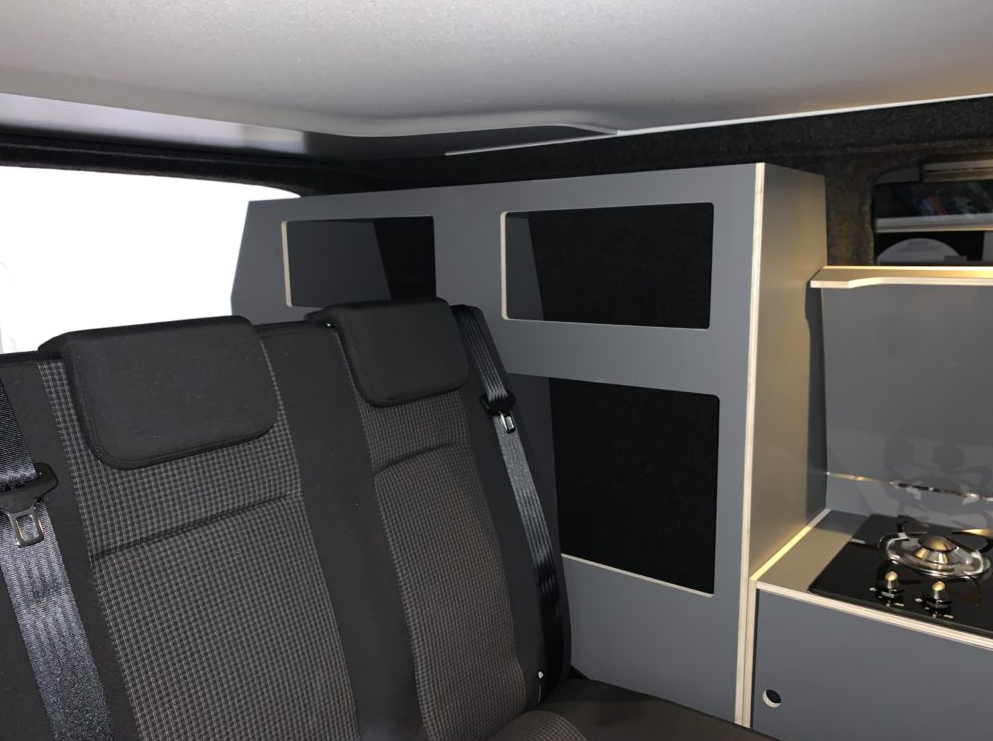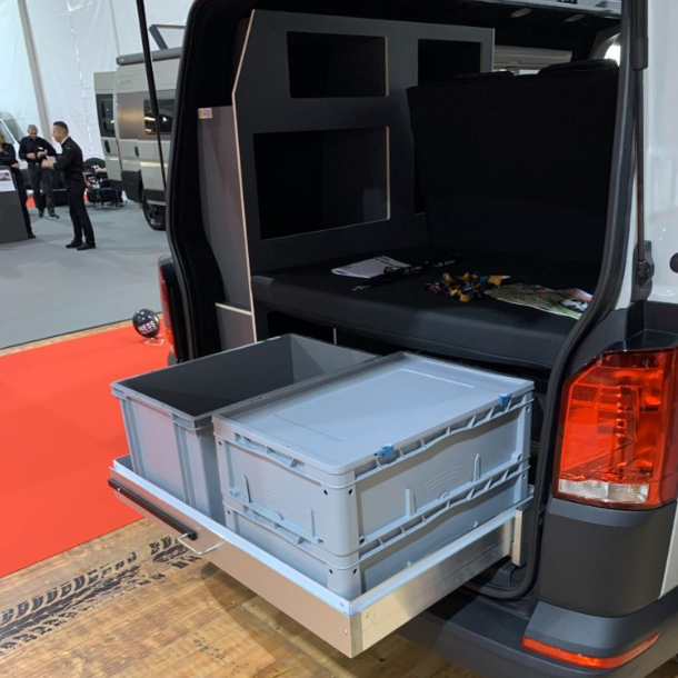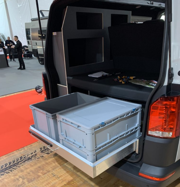 Modular gestalteter Innenraum mit klappbaren Sitzen und multifunktionalem Stauraum